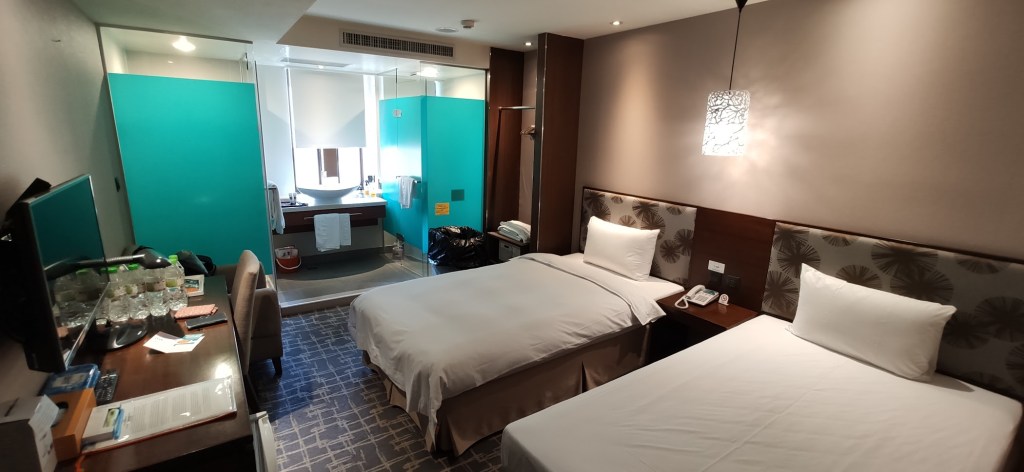 The friendly gentlemen informed me about the availability of a room about 10 minutes away from the current location. He showed me some pictures and I could immediately see that the room was significantly larger! I immediately told him to reserve that room. Next step was to contact the Taiwan ‘ CDC’ (Centers for Disease Control) and check what kind of paperwork needs to be done before I can be transferred to the the other hotel. Luckily, he helped me out, and could book a special ‘ Corona taxi’ to the other hotel. While waiting for the taxi, I saw that the inside of my protective shoes were completely wet! My sweat from my legs and feet could not get out. I felt relieved, I felt like he saved my life in a way! 10 minutes past, and the taxi arrived and there I go again, moving my luggage on the sidewalk back to the taxi. It was a short drive in Taipei, and saw many buildings and sidewalks that I know from many visits to this area. The taxi arrived at the hotel, and there I was again, lonely outside. I felt like a prisoner who could escape again! People were passing by while I was waiting for the hotel entrance door. It was so tempting to walk away! To grab some food and enjoy the beautiful mountain area of Taiwan!