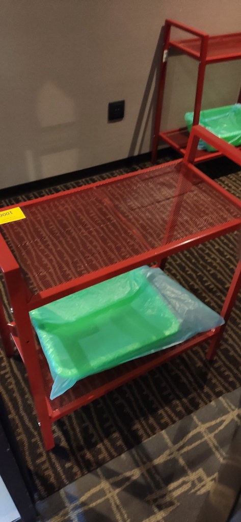 I walked upstairs, opened the room and my eyes were confronted with a space, as small as a big bath room, with barely space to walk. The ceiling was just high enough for me to walk, but I could not jump without touching it. The room did not have any proper chair, only a small stool suitable for children. No table to work; no space to do any sport exercise. I thought about the lady at the airport, who told me that I could not change the location of the hotel. I felt miserable, almost had to vomit, I knew I had to be locked up in this cabinet, not for 1 day, but more than 14 days. This was too much for me, I was afraid I was going to get mentally insane when they would lock up me in here for so long. Meanwhile the gentleman was moving my suitcases from the lift to my room. He saw my white face, with a small distance between my head and the ceiling. We were quiet for some seconds. The only thing what I could do is kindly request another room. Luckily, he immediately understood, but told me that they did not have any larger (and higher) rooms available. I rephrased my wish and he requested me to walk back downstairs. I had to wait while wearing the shoe protection in the front of the hotel, just behind the entrance door. While he was calling to another hotel, I saw other staff members packing fruits for their customers. I also saw a matrix representing all the rooms including the names of the individuals who are being ‘ locked up’ in this hotel. It felt so surreal, it felt like I was character in a bad movie.