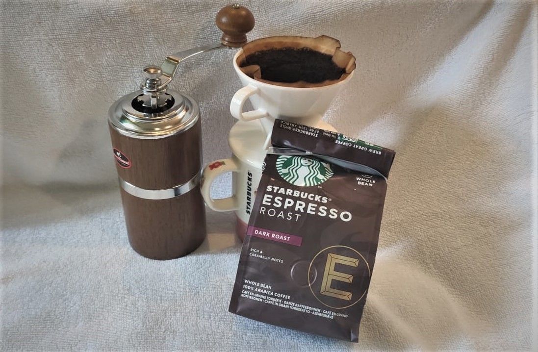 Because I finished my Netflix series yesterday, I decided to started a new episode from the ‘Queen of the South‘, a crime drama from the US and Mexico. While watching an episode, I run my sports exercise program and finish with a refreshing shower. While drying myself, I look forward to my next activity! Yesterday I received a package with Starbucks coffee beans, coffee spoon, filter, filter holder, grinder and cup. Basically, all the things you need to prepare for a Do-It-Yourself coffee. Of course, I could order another cup of coffee from Foodpanda, but this time I prefer to work for my coffee. I opened the package, while boiling the water in the electric kettle. Transfer two spoon to the top part of the grinder and start grinding. It reminds me of the grinder from my home town, that was positioned as a decorative item, like a piece of art on the wall. To honour the time that we had to manually grind our beans. Nowadays, lots of people have so-called full-automatic all-in-one devices: beans in, cappuccino out, by just pressing a single button on the unit. Like you have the industrial machines for processing chicken: whole chicken in, packaged chicken breasts out. Both are focused on automation, reproducibility and maximum productivity. I screw off the top of the grinder and place the powder in the filter, and pour slowly hot water over it, like a barista from your local coffee shop. I smell the coffee and hear the satisfying sound of drips of freshly prepared coffee in my porcelain mug. I close my eyes, bring the mug towards my lips, and carefully take a nip of the coffee while inhaling the vapours of it. Another joyful moment. I realize, again and again, that these small moments are very important and valuable to me during this stay, and I feel that they help me to get through this quarantine more smoothly.